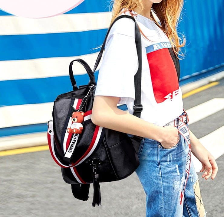 Na voljo v elegantni črni ali beli barvi, ni le modni dodatek, temveč tudi praktičen pomočnik za vsakodnevno nošenje. S prikupnim dizajnom, okrašenim z medvedkom in pomponkom, je idealen za šolo, univerzo ali izlete.