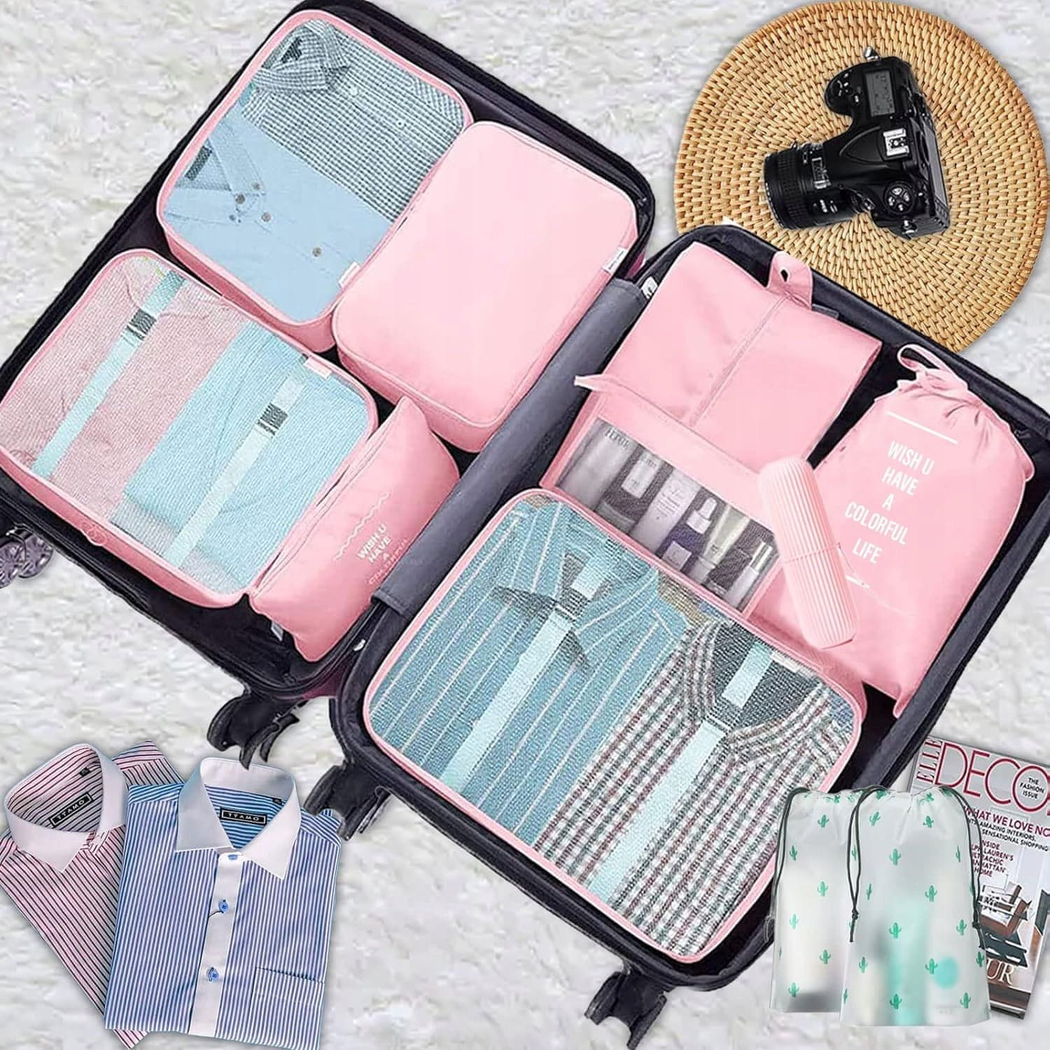 🎀 Komplet 8 potovalnih organizatorjev – roza barva