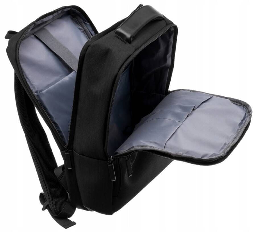 Nahrbtnik z dvema predelkoma. Vsi predelki se zapirajo s trdnimi dvosmernimi zadrgami. Urejena notranjost vam bo omogočila, da pospravite marsikaj, od dokumentov, preko prenosnika, tablice, pametnega telefona do oblačil.