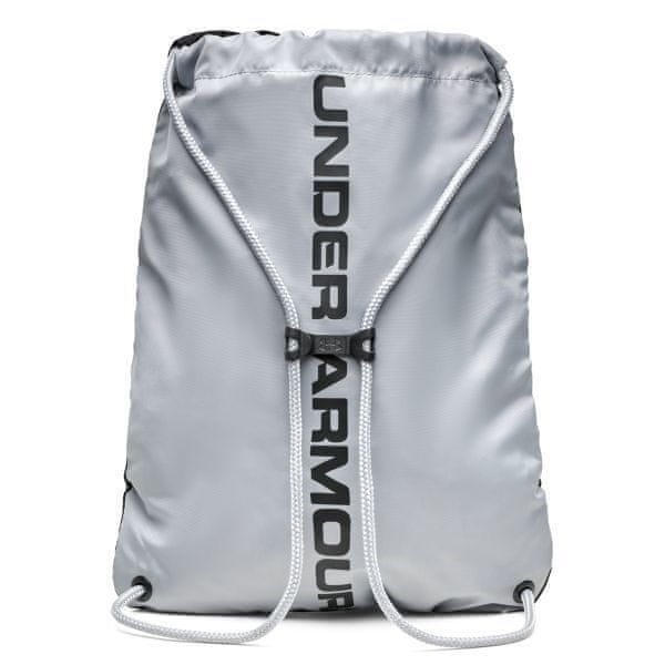Športna torba Under Armour. Črno-siva oblika z velikim logotipom blagovne znamke. Celoten opis