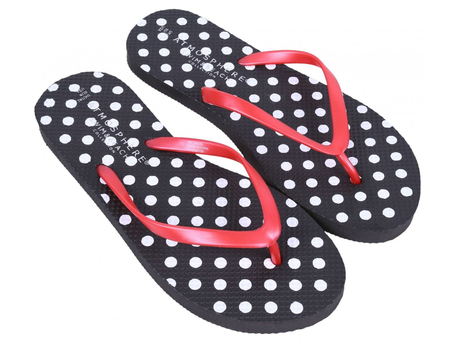 atmosphere Črne japonke z belimi pikami in rdečimi silikonskimi trakovi. 36-37 EU