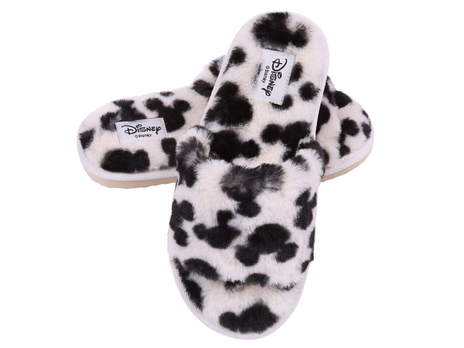 Črno-bežovi copati iz mehkega materiala s ponavljajočim se motivom Miki Miška. Enostavni za obuvanje z okroglim prstom, ki razkriva prste in peto, ter širokim trakom za podporo stopala. Stabilen, elastičen podplat iz pene izolira stopala od tal in preprečuje zdrse. Zelo topli, lahki in udobni, ideal Celoten opis