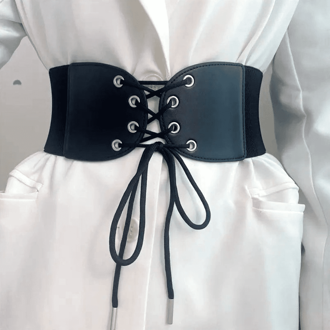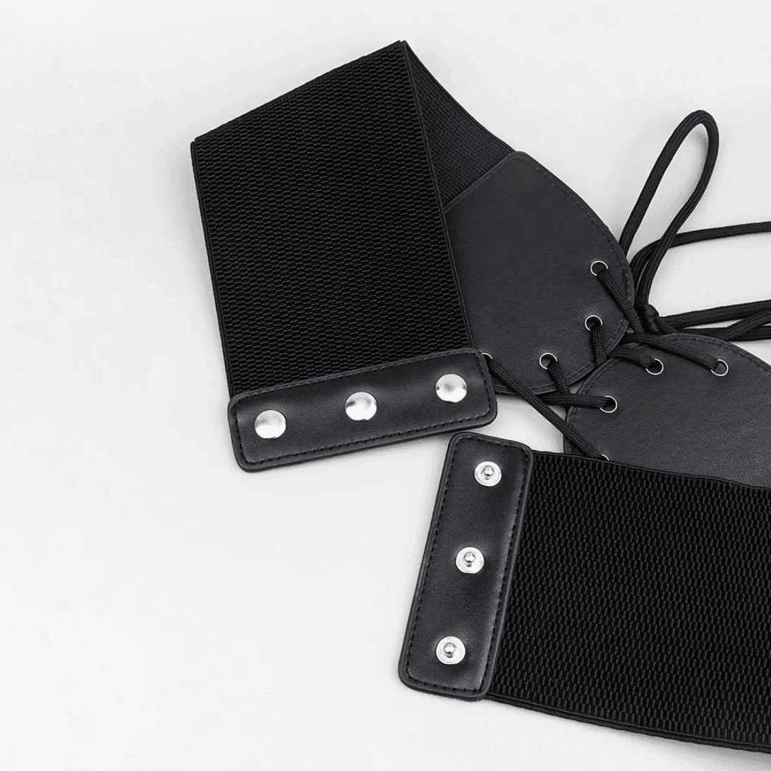 Ženski elastični korzetni pas je popoln modni dodatek, ki ga enostavno kombinirate s puloverji, oblekami ali tunikami. Ta stiliziran pas, izdelan iz elastičnega sintetičnega materiala z ekokožo, zagotavlja udobno nošenje in se popolnoma prilega. Praktično zapiranje na gumbih na zadnji strani ter privlačno vezanje spredaj dajeta korzetnemu pasu edinstven videz, ki pritegne pozornost.
