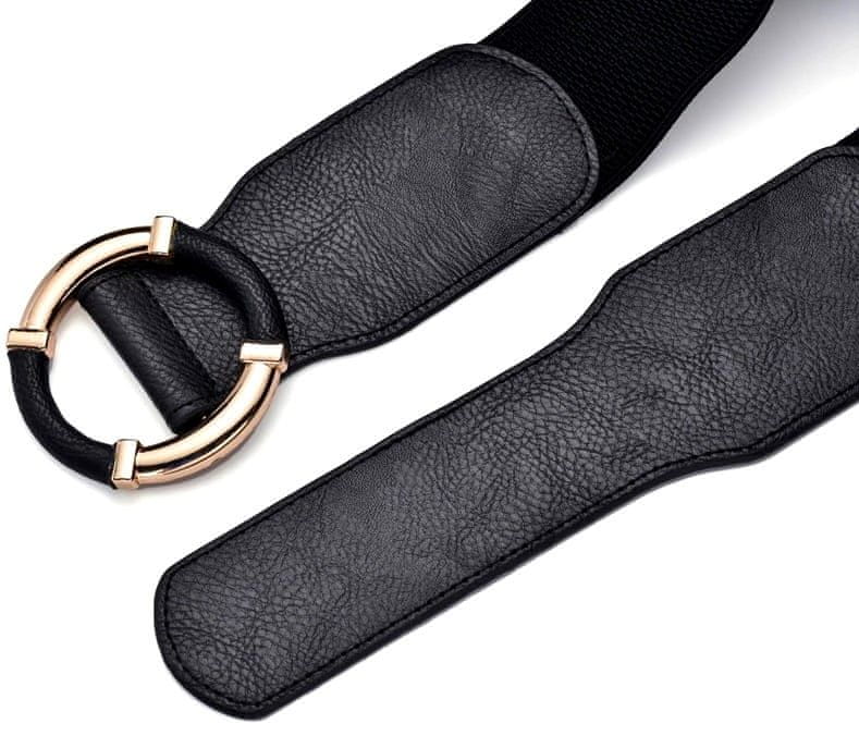 Camerazar Elegantni ženski elastični pas z zlatim sponko, črna, 78-110 cm x 6,5 cm, sintetični material