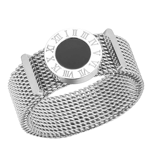 Srebrn prstan iz kirurgičnega jekla 316L združuje eleganten dizajn s praktičnostjo. Njegov edinstven videz, navdihnjen z rimskim obročem s urami, prinaša zgodovinski pridih, ki se prilega tako vsakodnevnemu nošenju kot posebnim priložnostim. Izdelan iz kakovostnega in hipoalergenega kirurgičnega jekla, je prstan zasnovan tako, da je odporen in trpežen, kar ga naredi idealno izbiro za dame, ki cenijo brezčasni slog.