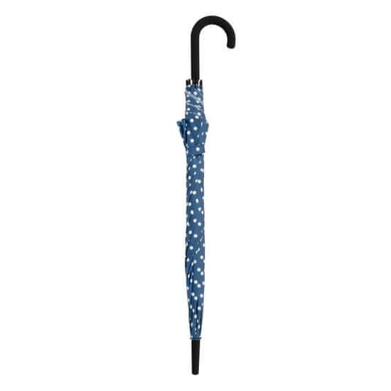 • Ne-zložljiv avtomatski dežnik belimi pikami na modri podlagi