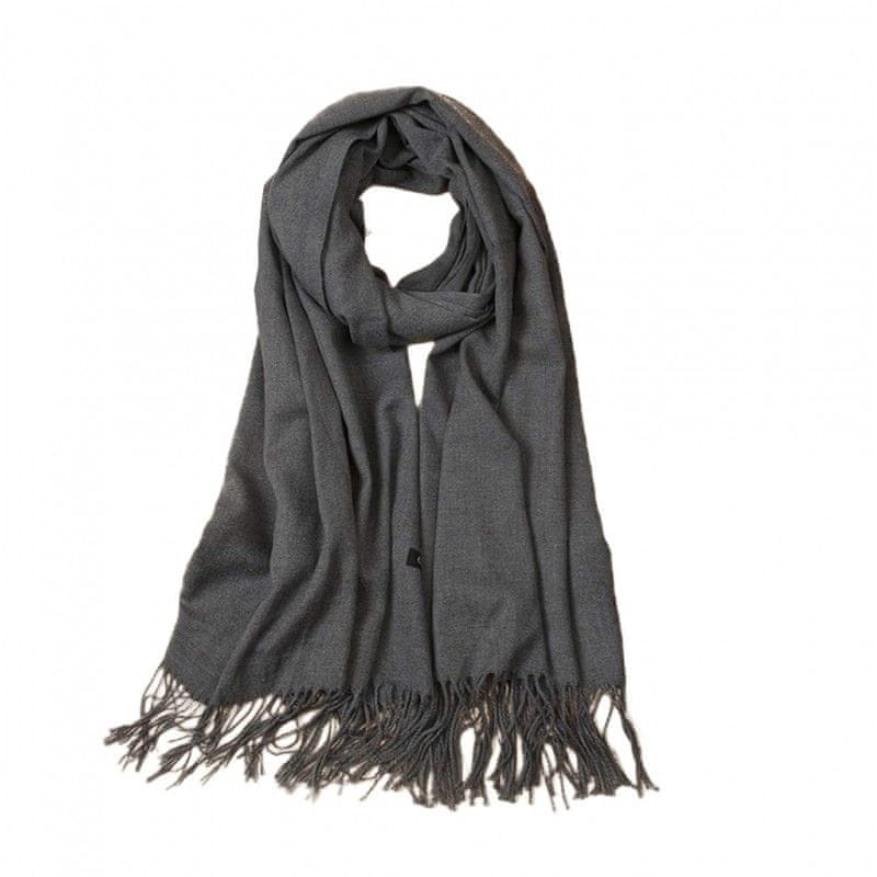 Flamenco Mystique Elegantni siva šal s resicami, 70x200 cm, viskoza in poliester