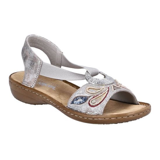 Odkrijte izjemno udobje in eleganco z ženskimi sandali Rieker Metallic! So popolna izbira za pomlad in poletje 2025, saj združujejo moden dizajn z vsakodnevnim udobjem. Srebrna barva jim daje sodoben, eleganten videz, ki se odlično poda tako k ležernim kot elegantnim oblačilom.