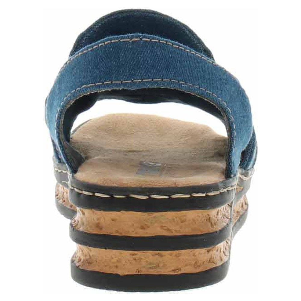 Udobni jeans sandali s platformo Rieker W RKR684Značilnosti:Sandali znamke Riekerpopolni za poletne dniza ženskeodprt dizajngumijasti klinzgornji del iz blagatekstilna podloga4,5 cm klingumijasti podplatBarva:temno modra Celoten opis