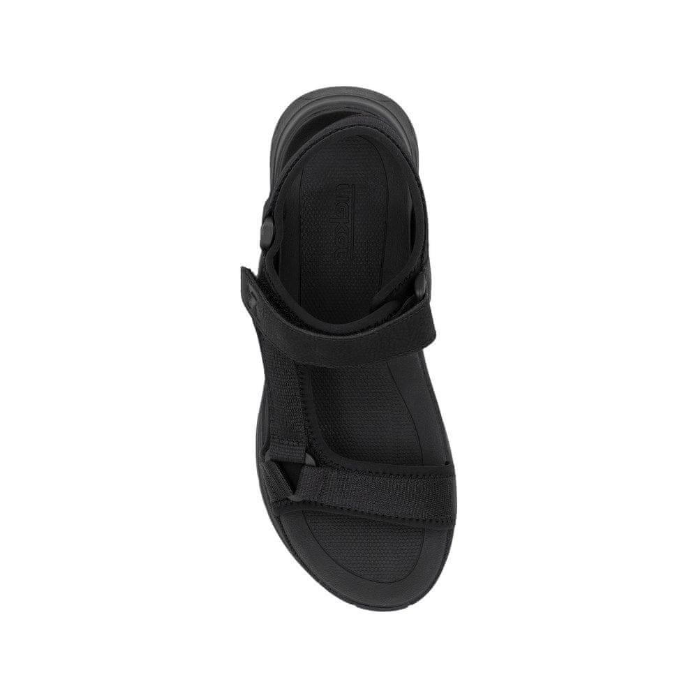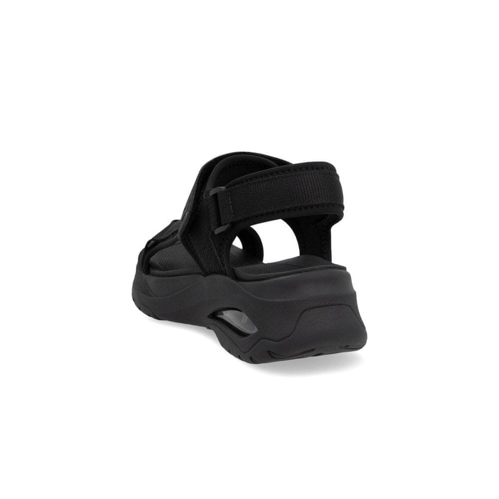 Ti črni ženski sandali Rieker združujejo športni slog z ženstvenim udobjem. Mehek zgornji del in podloga iz blaga zagotavljata udobje tudi med napornim dnem. Podplat s platformo in 5 cm visoka peta nežno dvigneta silhueto, ne da bi obtežila stopala. Celoten opis
