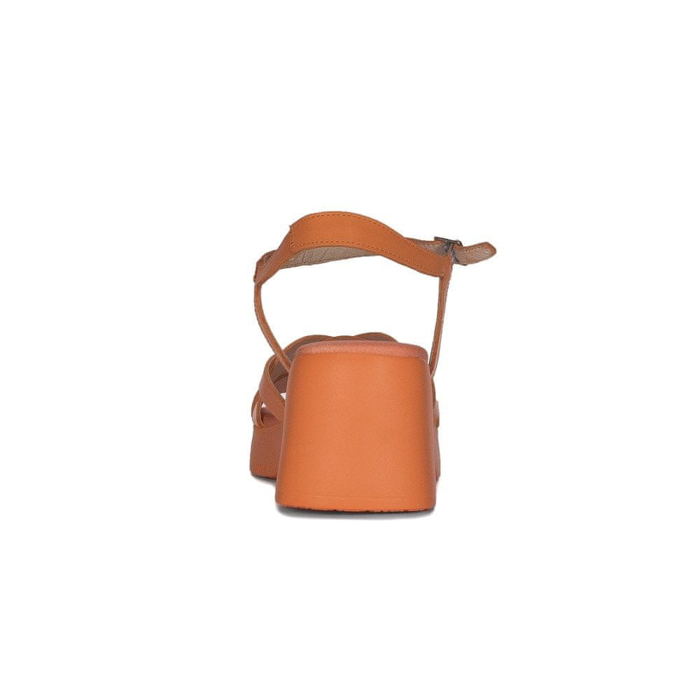 Ženski sandali so vrsta obutve, ki nikoli ne bo šla iz mode. Ta model španske znamke Wonders spominja na znane in priljubljene sandale s platformo. Različica tega proizvajalca je zelo izvirna in obogatena z nekaj dodatki. Zgornji del je izdelan iz naravnega polnozrnatega usnja v barvi „Apricot“ oranžna. Kolo sandalov je odprto in ima kvadratno obliko, kar zagotavlja udobje za prste. Peta je odprta. Model je brezrokavnik, z elastiko, všito v trak za boljše prileganje. Te kombinacije prispevajo k izvirnosti teh čevljev. Notranjost je izdelana iz pravega usnja, vložek in podplat pa sta iz visokokakovostnega sintetičnega materiala. Peta je visoka 7 cm, platforma spredaj pa 2,5 cm. Udobje in odličen videz sta zagotovljena v trenutku, ko obujete te čevlje. Država proizvajalca: Španija.