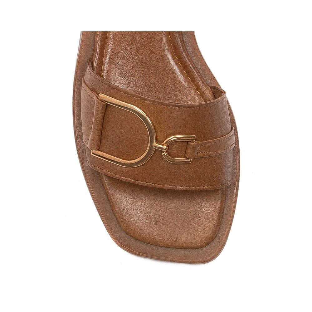 Filippo je blagovna znamka, znana po udobju in zanimivem dizajnu svojih izdelkov. Njihova obutev je privlačna za ženske vseh starosti. Predstavljamo vam čudovito izdelane in neverjetno udobne ženske ravne sandale. Rjavi zgornji del je izdelan iz polnozrnatega usnja. Kolo je odprto in kvadratno, kar omogoča udobno namestitev prstov in veliko svobode. Tudi vložek je izdelan iz usnja, prijaznega do stopal. Zapenjajo se s klasično zaponko. Ključna prednost teh čevljev je njihovo izjemno udobje, zahvaljujoč lahkemu, ravnemu podplatu iz visokokakovostnega materiala. Višina pete je 1,5 cm, višina platforme spredaj pa 0,8 cm. Popolni so za številne poletne stile in za številne različne priložnosti.