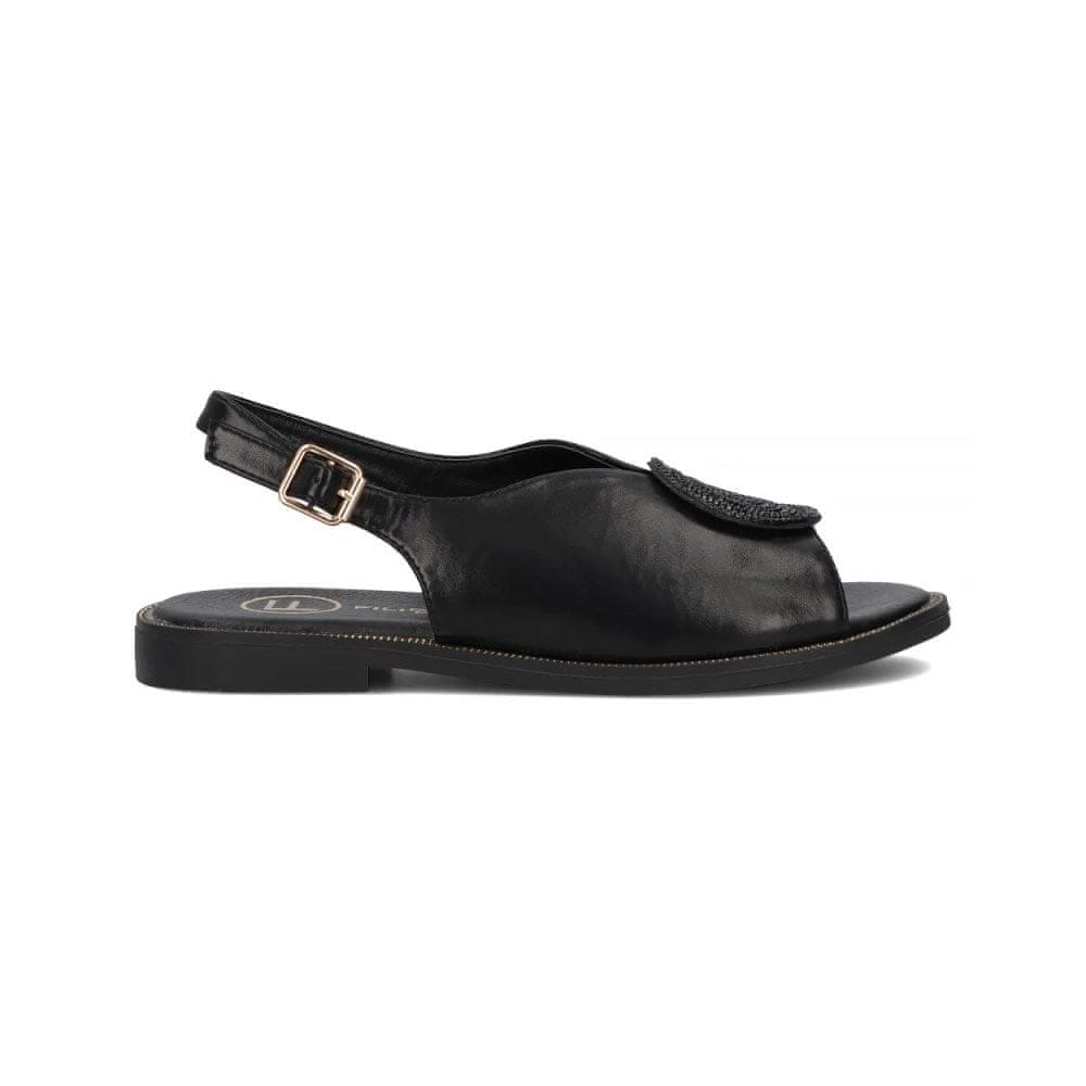 Ti črni ženski sandali Filippo so odlična izbira za sezono pomlad-poletje 2025, saj združujejo klasičen slog z udobjem. Izdelani so iz visokokakovostnega materiala in imajo usnjen vložek za udobje in zračnost. Odprt, okrogel prst in peta z nastavljivim paščkom zagotavljata svobodo gibanja in stabilnost. 1,5 cm visoka ravna peta naredi te čevlje idealne za vsakodnevno nošenje. Subtilna aplikacija na sprednji strani doda eleganco in izstopa v primerjavi s klasično črno barvo. Standardna širina in velikost zagotavljata udobno prileganje večini stopal. Ti sandali so popolni tako za delo kot za poletne sprehode.