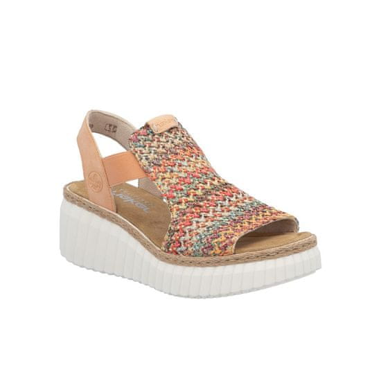 Iščete obutev, ki bo poživila vašo poletno garderobo in hkrati zagotovila udobje vaših stopal? Odkrijte najnovejšo ponudbo priznane blagovne znamke Rieker. Ti edinstveni, večbarvni ženski sandali pritegnejo pozornost s svojim čudovito tkanim zgornjim delom, ki je popolnoma v skladu s poletnimi trendi. Subtilna podrobnost, vrvica v slogu espadrile okoli lahkega podplata, doda še več šarma. Odprt prst in elegantno izpostavljena peta zagotavljata odlično zračnost v vročih dneh. Namesto tradicionalnih zapenjanj elastičen trak na zadnji strani zagotavlja enostavno obuvanje.