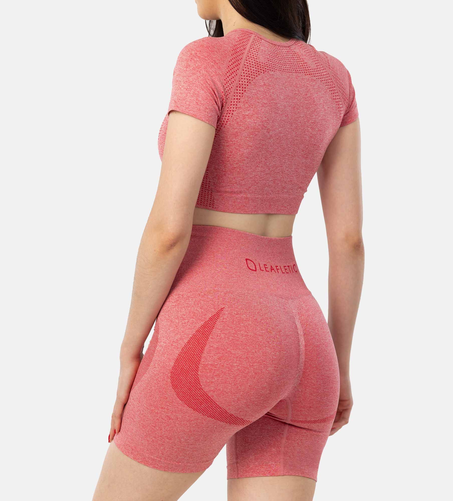 LEAFLETIC Komplet ženske premium brezšivne majice in kratkih hlač - udobne za šport in prosti čas, koralna, XS