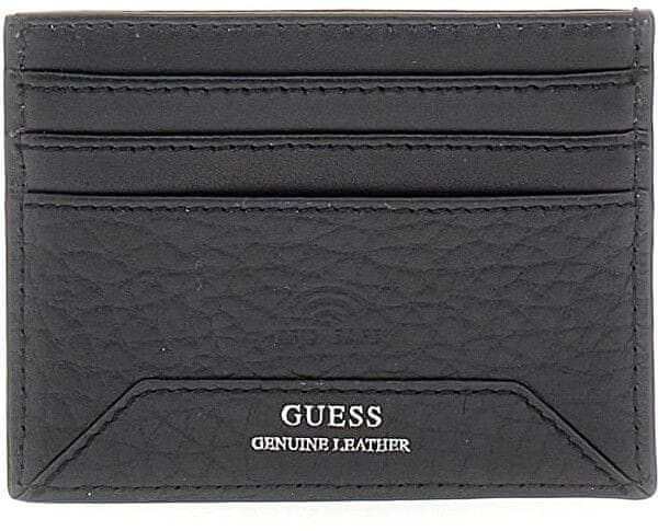 • Elegantna črna torbica za osebne izkaznice Guess iz pravega usnja,
