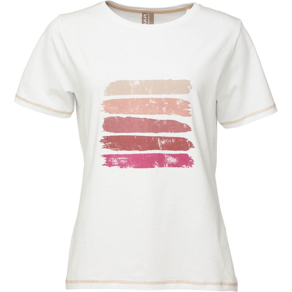 Ženska majica s kratkimi rokavi Loap ABNELIS je športna majica, primerna za mesto, šolo in prosti čas. Osnova je bombaž, zaradi česar bo majica udobna za nošenje, ne da bi neprijetno praskala, za doseganje boljših lastnosti pa je dopolnjena z elastanom. To daje majici lahko elastičnost in stabilnost oblike. Ohlapen kroj je zagotovilo, da se bo dobro prilegala vsaki postavi. Sprednji del majice je okrašen s potiskom z motivom barvne palete v različnih odtenkih.