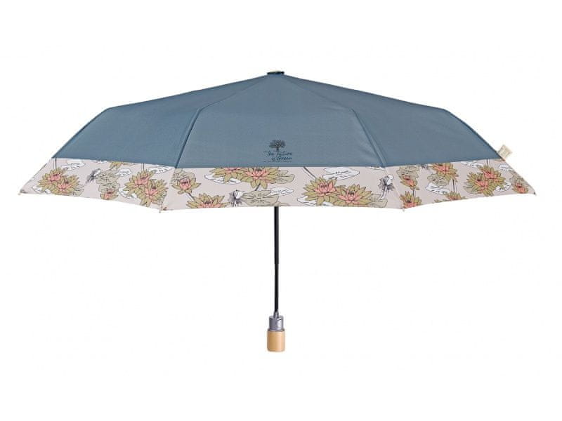 Perletti Eleganten zložljiv ženski dežnik Perletti Green "Fiori di Loto" - petr. zelena, 19160