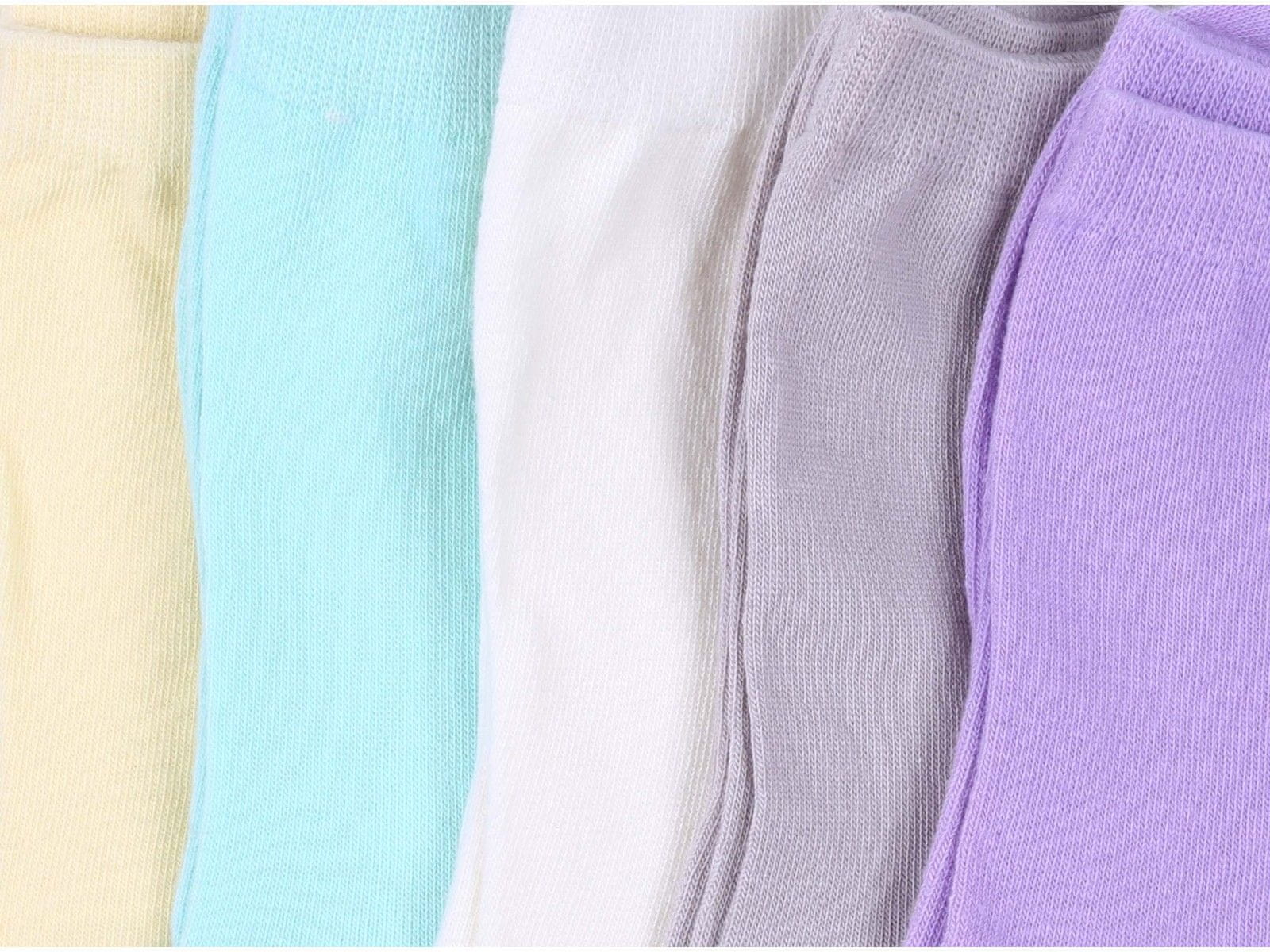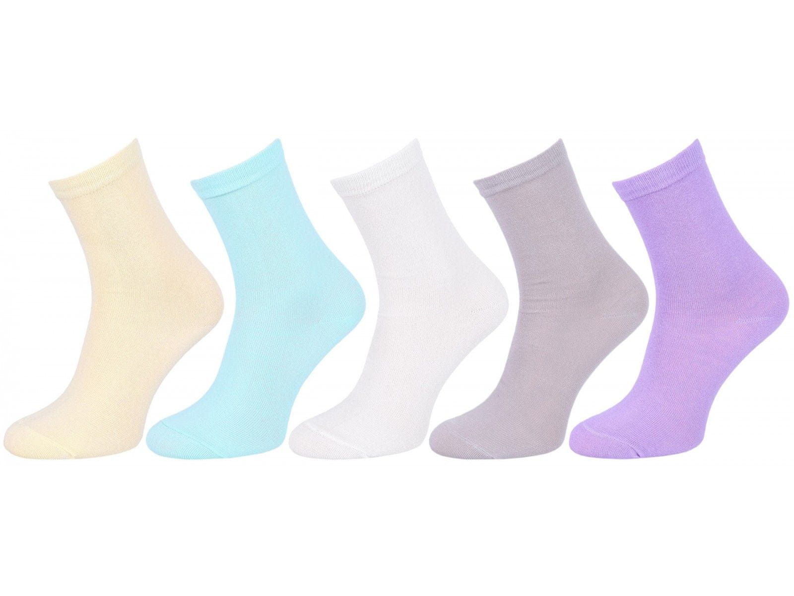 Komplet petih parov gladkih, visokih nogavic v univerzalni velikosti (37–42) v pastelnih odtenkih.