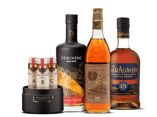 Tasting box vsebuje: – Yellowstone Kentucky Straight Bourbon Whisky – The GlenAllachie 15y Whisky – Stauningh Danish Whisky Celoten opis