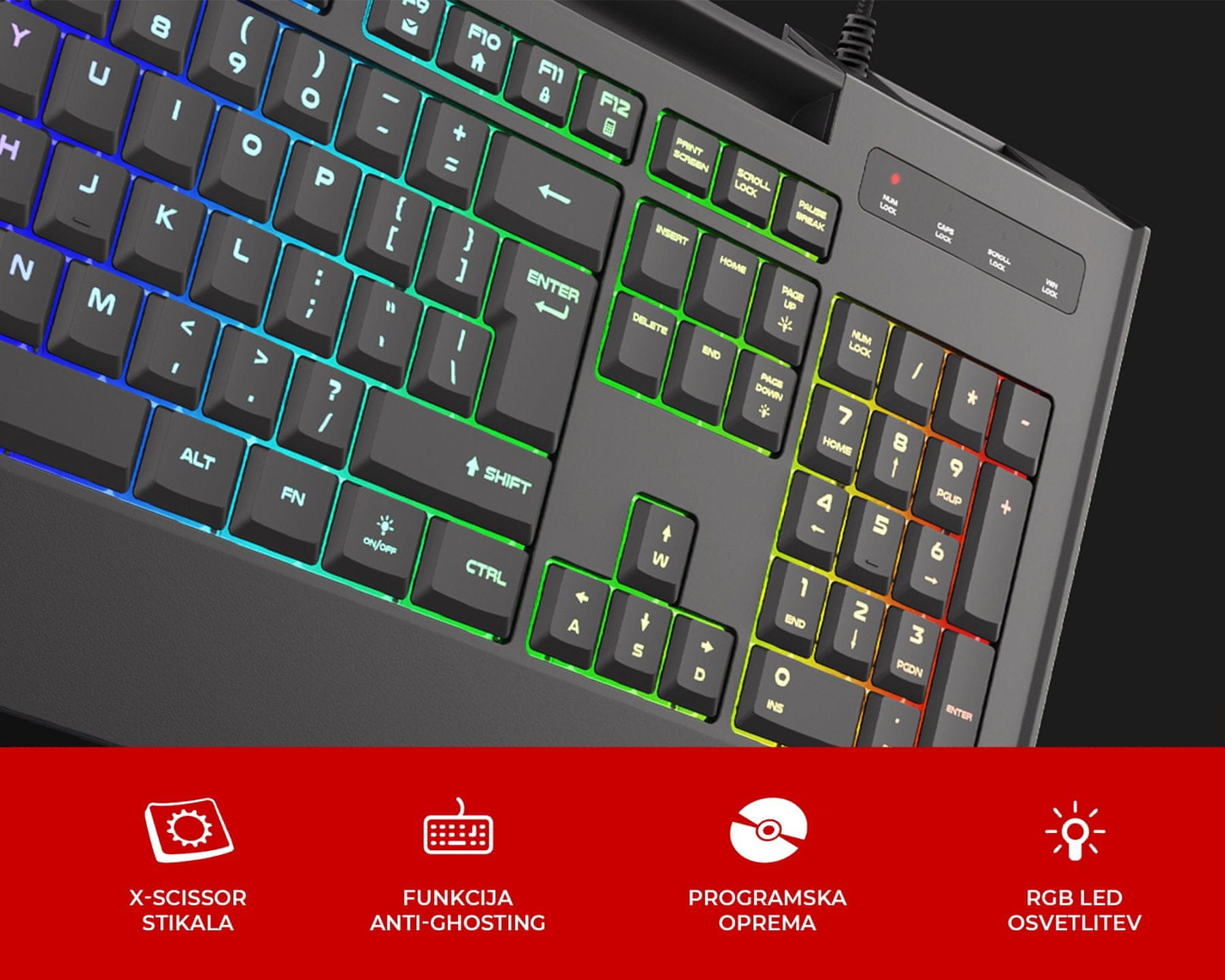 - Funkcija Anti-Ghosting – omogoča tudi najbolj zahtevne kombinacije pritiskanja tipk.