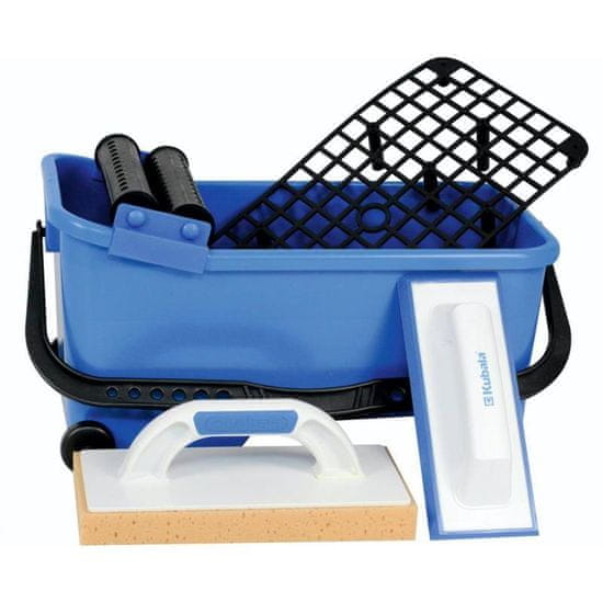 • Komplet vsebuje – vedro za ploščice 20 l, mrežo, komplet kolesc (KU1524), dvojne valjčke (KU1525), gladilko z rezano morsko gobo (KU0387), gladilko za fugiranje modre barve (KU0325).