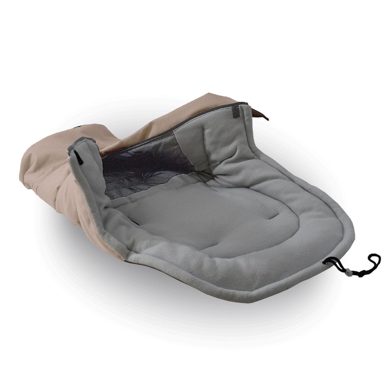 Otroška vreča ima zadrgo, odprtine za 5-točkovne varnostne pasove in gumijaste zaponke, ki omogočajo pritrditev na voziček.