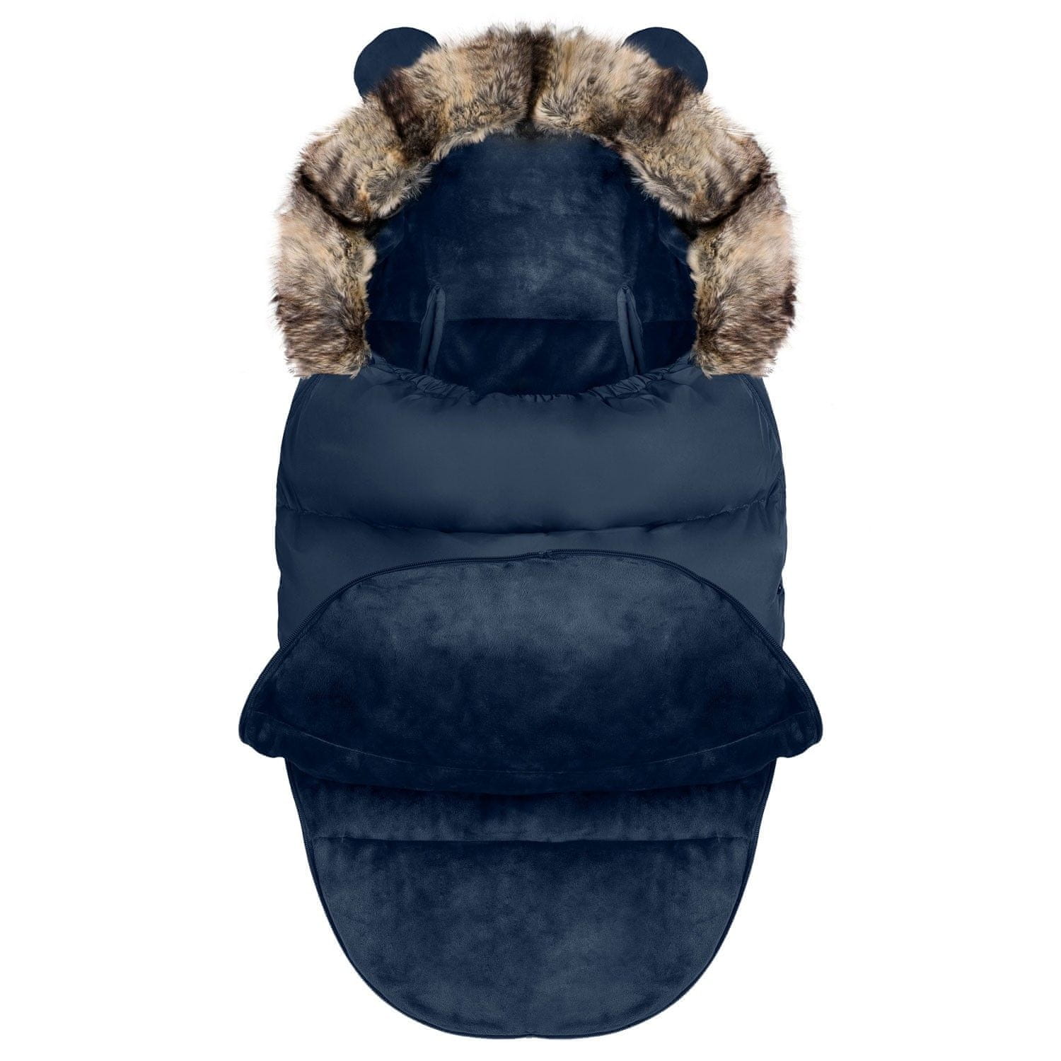 Mehko, občutljivo in odstranljivo krzno, Moderen in moden dizajn, Podložen z žametno mehko antialergijsko tkanino, Odpira se z dvema dvostranskima zadrgama (zgoraj in spodaj), Sprejemljivo za 2-, 3– in 5-točkovne pasove, Pritrdilni element preprečuje zdrs zaščitne noge v vozičku, Ščiti pred vetrom in snegom – kot nalašč za sankanje!