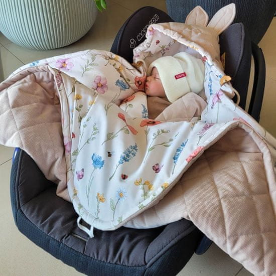 zaščitila avtosedež pred umazanijo , odlična bo med sprehodi v vozičku in doma. Je izjemno praktična in udobna za uporabo. Zapenja se z ježkom , s katerim lahko širino odeje prilagodite svojim individualnim potrebam. Poleg tega nastavljiva kapuca zagotavlja toploto in zaščito pred vetrom . Primerno za oba avtosedeža s 3– in 5-točkovnimi varnostnimi pasovi . Dodaten všiti elastični trak, ki ga je mogoče pritrditi na zaponko, bo preprečil, da bi vaš otrok brcal odejo okoli nog. Varen prevoz otroka v avtosedežu je bistvenega pomena, zato ne pozabite, da pasu ne pritrdite čez spolzke kombinezone ali jakne. Odeja omogoča varen in topel prevoz vašega dojenčka, tudi če je oblečen samo v bodi.