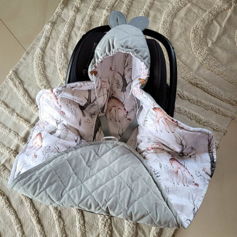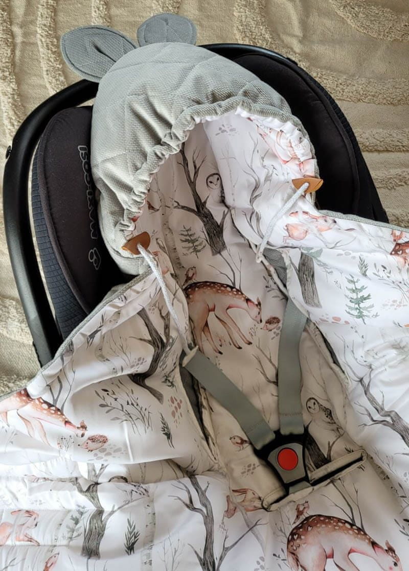 zaščitila avtosedež pred umazanijo , odlična bo med sprehodi v vozičku in doma. Je izjemno praktična in udobna za uporabo. Zapenja se z ježkom , s katerim lahko širino odeje prilagodite svojim individualnim potrebam. Poleg tega nastavljiva kapuca zagotavlja toploto in zaščito pred vetrom . Primerno za oba avtosedeža s 3– in 5-točkovnimi varnostnimi pasovi . Dodaten všiti elastični trak, ki ga je mogoče pritrditi na zaponko, bo preprečil, da bi vaš otrok brcal odejo okoli nog. Varen prevoz otroka v avtosedežu je bistvenega pomena, zato ne pozabite, da pasu ne pritrdite čez spolzke kombinezone ali jakne. Odeja omogoča varen in topel prevoz vašega dojenčka, tudi če je oblečen samo v bodi.