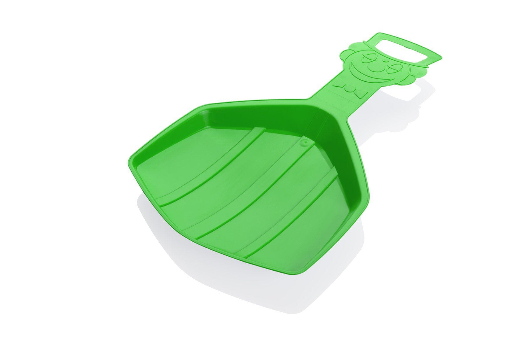 Klovnski tobogan – enostavna uporaba lopate za sani. Širina sedeža 34 cm, dolžina tobogana 57 cm. Zasnovan za rekreativni šport. Na voljo v limetino zeleni barvi.