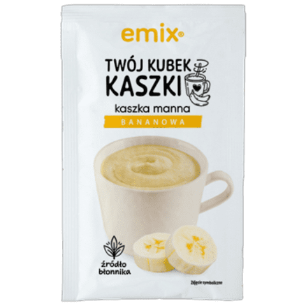 Bananina kaša z zdrobom – hitra, okusna in polnega okusa! To je popoln prigrizek za majhen zajtrk ali kadar koli si zaželite nekaj slastnega! Samo prelijte z vrelo vodo, premešajte in pripravljena je – v le nekaj trenutkih boste imeli okusno sladico ali prigrizek. Zahvaljujoč naravnim sestavinam je ta kaša okusna, zdrava in polna okusa po banani, ki ga bodo oboževali vsi.