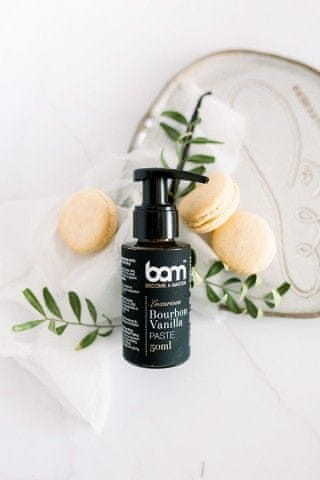 BAM vanilijeva pasta vas bo prevzela s svojim bogatim vanilijevim okusom, omamnim vonjem in edinstveno aromo. Pristen koncentrat bourbonske vanilije iz Madagaskarja. Izdelek je popolnoma brez alkohola. Dodana semena vanilije bodo dodatno popestrila izgled vaših jedi. Vanilijeva pasta služi kot odličen dodatek za vaša peciva in sladice.