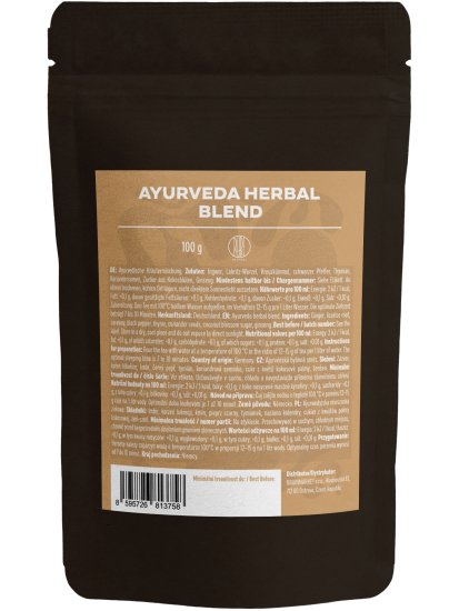 Ajurvedski čaj: naravna mešanica za telo in duha Ta čajna mešanica združuje preverjene ajurvedske sestavine, znane po svojih usklajevalnih in krepilnih učinkih. Ingver in črni poper grejeta in podpirata prebavo, sladki koren in timijan pomirjata in sprostita dihalni traktmedtem ko ginseng prispeva kpsihični in fizični odpornosti.Kokosov sladkor doda mešanici naravno sladkobo, ne da bi preglasil okus posameznih sestavin. Ajurvedska mešanica spodbuja sprostitev brez utrujenosti – ravno nasprotno, podpira naravno energijo in ravnovesje telesa. Odkrijte moč ajurvede Ajurveda je več tisoč let staro učenje o zdravem in uravnoteženem življenju, ki izvira iz Indije. Osredotoča se na to, kako se počutimo – fizično in duševno – in nam pomaga najti ravnovesje z uporabo naravnih načinov, kot so zelišča, prehrana in dnevni rituali.