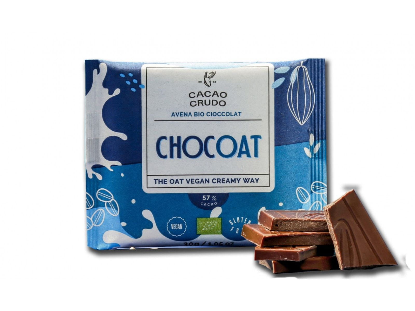 Cacao Crudo Raw Oat temna čokolada, BIO, 30 g Nepričakovano kremna rastlinska čokolada, uravnotežen okus kakava, pravilno sladek iz nektarja kokosovih cvetov. Čokolada, izdelana iz inovativnega hidroliziranega ovsenega mleka v prahu, ki je odlična alternativa kravjemu mleku in mleku drugih živali, ter surovega finega kakava enega izvora iz Peruja. Bogatega okusa, topljivega in nadvse okusnega. Odličen kakav Criollo iz perujske Amazonije Raw Cacao je nov način pridelave in okušanja čokolade. Proizvodni procesi, ki v primerjavi s tradicionalnimi postopki najbolje ohranjajo redke lastnosti kakava in drugih uporabljenih surovin. Cacao Crudo je prvi proizvajalec surove čokolade v Italiji. Uporablja fine sorte kakava Criollo ene vrste iz perujske Amazonke, ki se nikoli ne predeluje nad 42 °C. Klasičen postopek praženja kakavovih zrn zamenjamo s počasnim sušenjem v zaščiteni atmosferi. Sestava Nepražena kakavova pasta Criollo zrna* (kakavova snov 57% min.), zgoščeni sok iz kokosovih cvetov*, liofiliziran ovseni prah* (20%), kakavovo maslo iz nepraženih zrn*. Lahko vsebuje mandlje, lešnike in orehe. *izdelek ekološkega kmetovanja.Podatki o hranilni vrednosti na 100 g:Energijska vrednost 2387 kJ / 574 kcalMaščobe 40,8 gOd tega nasičene maščobe 26,1 gOgljikovi hidrati 40,6 gTo je sladkor 21,5 gVlaknine 6,8 gBeljakovine 7,8 gSol 0,04 gOpozorilo Hraniti na suhem in hladnem mestu.