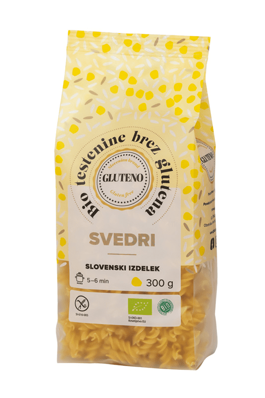 Gluteno Bio testenine brez glutena Svedri 8 x 300g