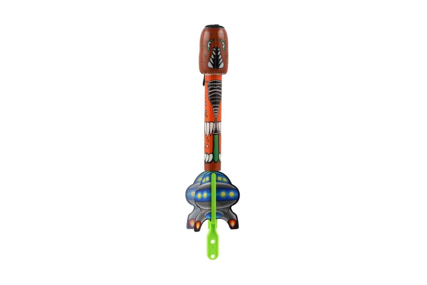 Za vsakega malega rauberja je na voljo izstreljevalnik puščic (raketa)! Raztegnite gumico, streljajte in opazujte, kam poleti raketa! Komu bo uspelo izstreliti puščico na največjo razdaljo ali na največjo višino? Dimenzije paketa 13 × 32 × 4 cm. Primerno za otroke, stare 8 let in več.