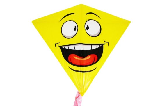 Otroški leteči zmaj s sliko smeška. Celoten opis