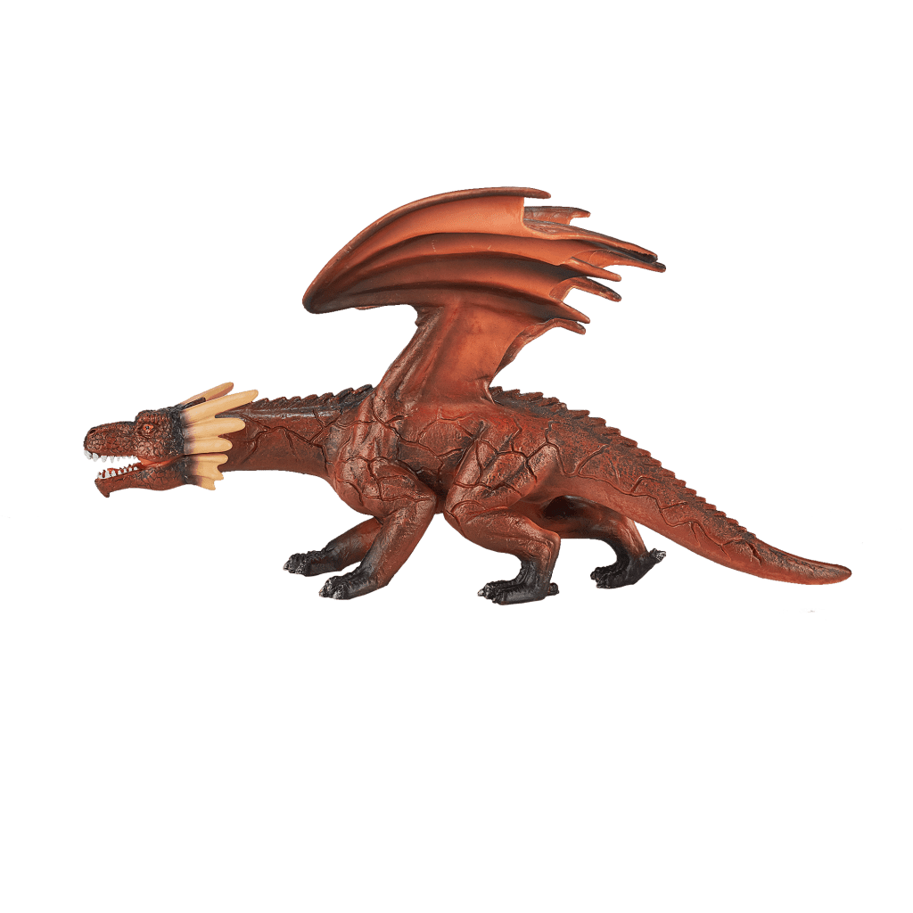 Impozanten lik ognjenega zmaja, bitja, polnega moči in skrivnosti. Ta podrobno izdelan zmaj z ognjeno kožo odraža divjo in neukročeno naravo tega legendarnega bitja. Z zelo okrašenimi krili in ostrimi kremplji je veličasten dodatek zbirki ali zabaven predmet za igro. Izdelan je iz visokokakovostnega PVC (neftalat) in je varen za otroke od 3. leta starosti. Izdelek ima ročno poslikane podrobnosti.