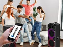 Prepustite se glasbi in izberite Manta SPK1204X800D MINOS PRO! Zvočnik navdušuje z napredno Bluetooth povezavo za povezovanje z napravami, funkcijo FM Radio, vgrajene pa ima tudi vhode USB, AUX, microSD, 2× MIC-in, ki še dodatno pripomorejo k njegovi funkcionalnosti. Vgrajen izenačevalnik / Equalizer omogoča priročno nastavljanje tonov zvoka po vaših željah, atraktivna RGB LED osvetlitev pričara prijetno vzdušje, funkcija X-Bass pa odlično poudari nizke tone. Zvočnik se lahko pohvali tudi s priloženim brezžičnim mikrofonom in daljinskim upravljalnikom.