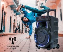 Prepustite se glasbi in izberite Manta SPK1001B300 ATHOS! Zvočnik navdušuje z napredno Bluetooth 5.0 povezavo za povezovanje z napravami, vgrajene pa ima tudi vhode USB, AUX, microSD, 2× MIC-in ter vhod za priklop kitare, ki še dodatno pripomorejo k njegovi funkcionalnosti. Odlikuje ga vgrajena polnilna baterija, ki mu omogoča popolnoma brezžično delovanje. Vgrajen izenačevalnik / Equalizer omogoča priročno nastavljanje tonov zvoka po vaših željah, funkcija X-Bass pa odlično poudari nizke tone. Zvočnik se lahko pohvali tudi s priloženim brezžičnim mikrofonom in daljinskim upravljalnikom.