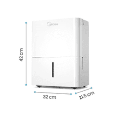 Razvlažilnik zraka Midea MDDN-12DEN7-QA3-C ima zmogljivost razvlaževanja 12l/dan, primerno je za zarvlaževanje prostorov do 20m2. Hranilnik vode ima volumen 2l. Odlikuje ga majhna poraba energije, indikacija napolnjene ali nepravilno vstavljene posodo za vodo.