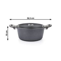 Posoda BlackStone z 4-slojno sestavo in jedrom iz kovanega aluminija zagotavlja enakomerno segrevanje in vrhunsko trpežnost. Marmorni premaz z mineralnimi delci omogoča kuhanje z malo maščobami ter ohranja hranilne snovi. Primerna za vsa kuhališča, tudi indukcijo.