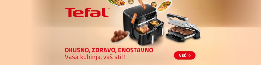 Tefal Easy Fry Mega cvrtnik na vroč zrak se ponaša s prostornino 7,5 l in 8 prednastavljenimi programi. Posodo odlikuje premaz proti prijemanju, ki olajša čiščenje.