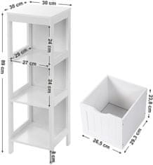 Zagotavlja dovolj prostora za vaše pripomočke in hkrati krasi vaš dom. Dostavna omarica navdušuje s svojo funkcionalno zasnovo in stabilno izdelavo. Kopalniška komoda je opremljena z 2 velikima predaloma in 1 odprto polico, zahvaljujoč izvlečnim predalom pa lahko poljubno spreminjate položaj predalo