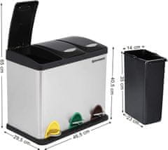 Praktičen trikomorni koš za perilo in perilo s skupno prostornino 132 l. Zaradi izbranih materialov je izdelek odporen na morebitne poškodbe. Posodo lahko uporabljate v pralnici, kopalnici ali celo v otroški sobi kot koš za igrače. Organizirajte svoj dom še danes s košem za perilo s tremi komorami,