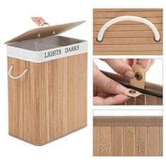 Koš za perilo je izdelan iz visokokakovostnega naravnega bambusa, ki združuje slog in funkcionalnost.
