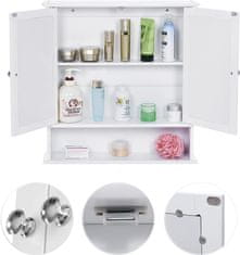Elegantna kopalniška omarica, idealna za majhne do srednje velike kopalnice. Z dvema vratoma in nastavljivo polico omogoča priročno shranjevanje dodatkov. Zaradi tečajev z mehkim zapiranjem se vrata tiho in gladko zapirajo.Dimenzije: 60 × 30 × 63 cmBarva: belaFunkcije: Nastavljiva polica, mehko zapi