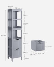 Zagotavlja dovolj prostora za vaše pripomočke in hkrati krasi vaš dom. Dostavna omarica navdušuje s svojo funkcionalno zasnovo in stabilno izdelavo. Kopalniška komoda je opremljena z 2 velikima predaloma in 1 odprto polico, zahvaljujoč izvlečnim predalom pa lahko poljubno spreminjate položaj predalo
