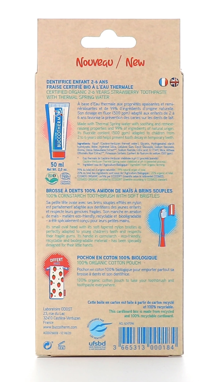 Buccotherm potovalni set zobne ščetke z vonjem jagode za otroke Celoten opis